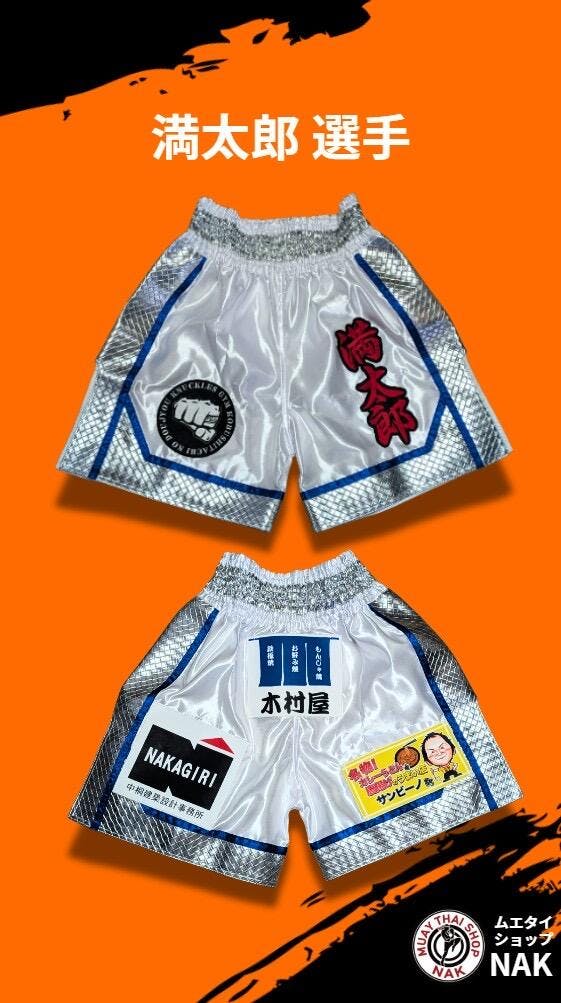 満太郎選手のオーダーキックパンツ(ミドル丈・XLサイズ)を制作しました。体格やスタイルに合わせた完全オーダーメイド仕様で、動きやすさとデザイン性を両立。高品質な生地と丁寧な縫製による耐久性の高い仕上がりで、キックボクシングやムエタイの試合・練習に最適な一着です。選手の個性を活かしたデザインで、唯一無二の存在感を放ちます。